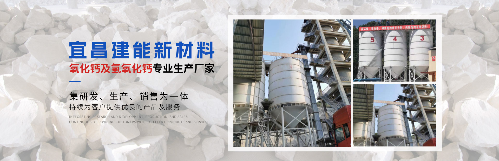 宜昌建能新材料有限公司 地址位于湖北省宜都市姚家店鎮(zhèn)油榨坪村二組,交通便利。我們公司是一家專業(yè)從事石灰研發(fā)、生產(chǎn)、銷售為一體的高科技生產(chǎn)型企業(yè)。公司采用優(yōu)良石頭資源,出產(chǎn)的石灰品質(zhì)優(yōu)良,主要經(jīng)營產(chǎn)品有石灰石、石灰塊、石灰石粉、氧化鈣、氫氧化鈣、母料專用灰鈣粉、建筑用石、方解石粉、重晶石粉等。 公司生產(chǎn)的石灰、碎石等產(chǎn)品,以優(yōu)良的產(chǎn)品質(zhì)量,獲得了不少客戶的信任。 公司秉承“誠信、優(yōu)質(zhì)、共贏”的經(jīng)營理念,堅(jiān)持用戶至上、服務(wù)優(yōu)先原則,用心解除客戶所憂;以科技服務(wù)和好的產(chǎn)品服務(wù)客戶;始終堅(jiān)持以“想顧客之所想,急顧客之所急”的經(jīng)營理念,不斷前行......